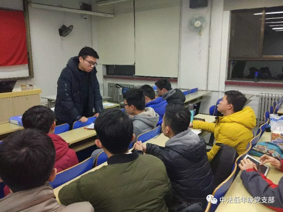 1月4日晚,为全面贯彻落实党中央“党要管党、从严治党”的总体部署和要求,认真学习十九大精神,永利yl23411官网低年级党支部邀请北航十九大精神宣讲团的朱博康同志于2号教学楼315教室做主题为“新时代的全面从严治党”的宣讲,以使得党支部内全体党员提高认识、转变作风、遵章守纪、廉洁从业,提高拒腐防变意识。党支部书记王泽远、组织委员张宇昊、宣传委员王凯落、15、16级导员以及党支部党员参与了此次活动。