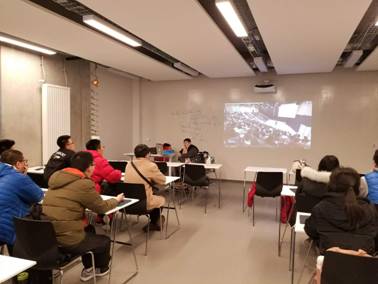 除了与路易大帝中学交流,此次冬季交流团还有一个重要的任务就是参观巴黎中央理工大学,了解法国工程师教育及工程师学生的学习、科研以及生活。在巴黎难得一见的大雪中,我们来到了巴黎中央理工大学的新址,Anne教授接待了我们。Anne首先给学生们介绍了巴黎中央理工的概况,随后安排我们听了中央理工大学一名工程师学生介绍的他们做的一个小项目课题。