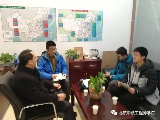 “航轨实践队“抵达成都后,采访了参与高铁规划的单位(四川省发改委铁路和机场建设办公室管理处向睿处长)、参加高铁建设的企业(新筑股份工程构建公司副总经理赵健)以及高铁领域的专家学者(西南交通大学伍星教授)。前两次采访都是在单位或企业的办公室中进行,办公室四周墙上也都张贴有《中国十三五铁路网规划图》、《中长期铁路网规划图(2030)》等令人振奋的密密麻麻的线网图。受采访单位的负责人与实践队成员们围坐成一圈,谈话总是从他们对我们的专业情况的关心开始,在了解到四名队员都是北航的大一学生后,受访领导赞赏空天报国之志,且在之后的采访中不时流露出对于大学生未来在高铁等领域做贡献的期待。采访西南交大伍教授的地点位于西南交大九里堤校区旁的一家创客咖啡内,以方便伍教授百忙之中抽出时间与实践队进行交流。领导和教授们专业知识丰富,面对提问侃侃而谈,实践队的成员在采访中专心倾听、认真记录,不但获得了大量与高铁相关的信息,还收获了不少对学习和生活大有裨益的各类知识和方法。实践队在实践期间还同西南交大中国高铁发展战略研究中心汤庆元教授保持微信联系,询问了高铁时间表等资料的查询渠道,询问了高铁相关网站论坛等。汤教授不仅解答了实践队的不少疑惑,而且对于这次实践的其他环节也颇为关心。与领导和教授交流的过程让实践队收获的远不止是完成这次实践所需的知识,来自他们的经验、关怀和鼓励方为实践队成员在社会实践过程中发掘的宝藏。