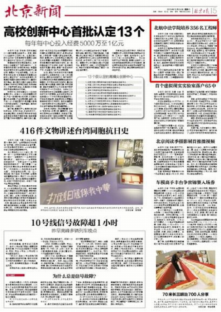 《北京日报》:北航永利yl23411官网培养356名工程师