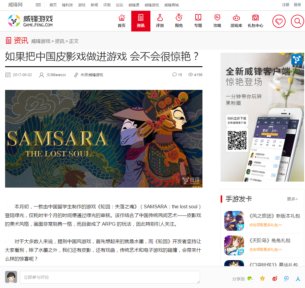 在游戏的正式研发过程中,张守龙负责动画设计,张笑颜负责游戏美工,丁瑞雪则负责游戏的代码编写。整个过程还是很辛苦,要同时兼顾学业与游戏的制作,但最后的结果让他们觉得努力没有白费。他们在四月份将游戏《轮回:失落之魂》放上了Greenlight,同时在NGA以及贴吧、蒸汽动力论坛等地方进行宣传,获得了大量的关注,在每个地方都有上百条回帖,很多玩家对他们的游戏提出了中肯的建议以及鼓励,很多网友提出愿意帮他们进行音乐制作以及美工设计,大量游戏网站如游民星空、威锋网等,自发地报道了他们的游戏帮助他们进行宣传,Google的“皮影风游戏”关键词下前三页都是关于他们游戏的报道。所以最后他们的游戏在短短的两周内便通过了Greenlight的选拔,获得了在Steam上的发售资格。