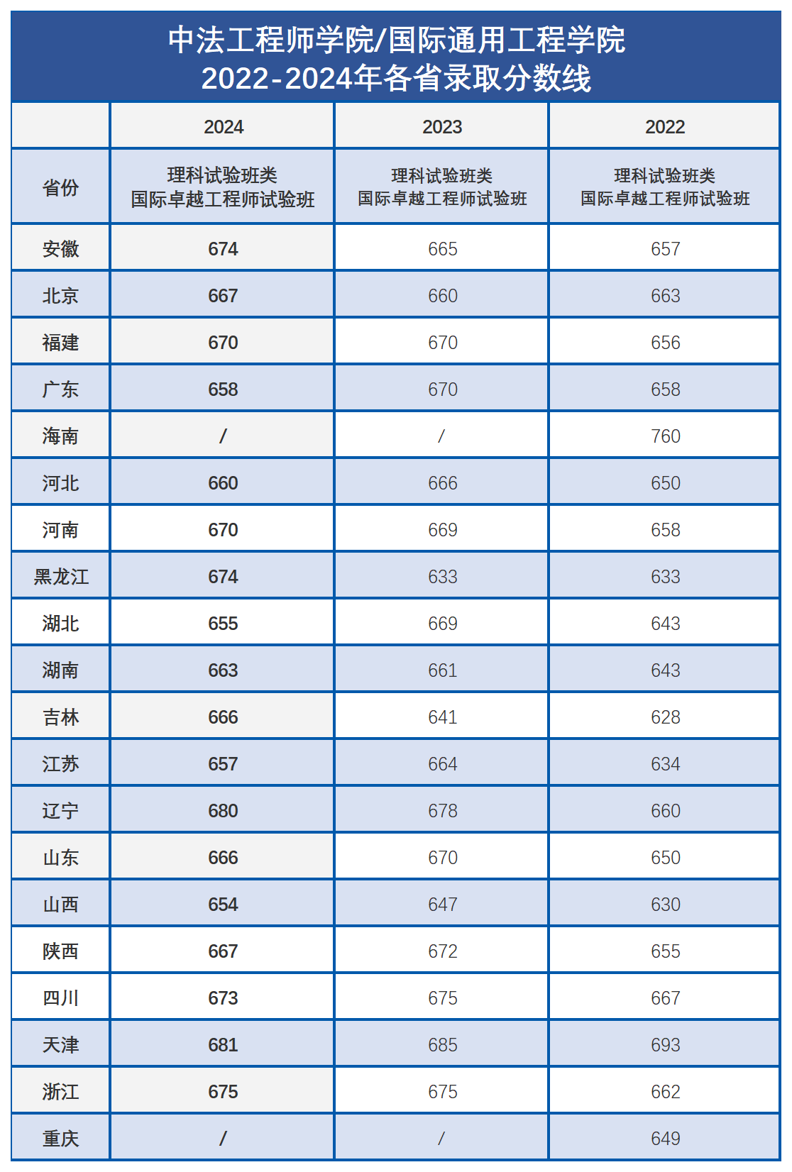 在这里,我们为大家整理了中法永利yl23411官网/国际通用工程学院2022-2024年各省录取分数线,供大家参考。