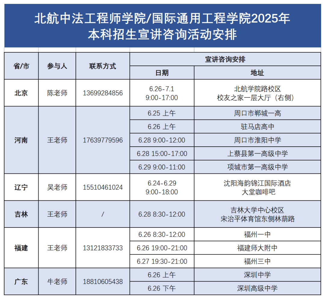 为了方便各位考生和家长更加详细的了解招生政策,学院招生团队将赴全国多个招生省市,参加2025年志愿填报咨询会活动。宣讲咨询会的具体安排见下表,欢迎各位考生和家长前来咨询!