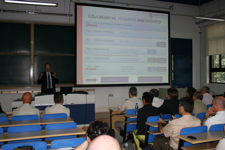 中方副院长徐平致欢迎词,法方副院长朱叶泰(François-Xavier ALZUYETA)就永利yl23411官网的成立,发展以及未来展望向代表团一行做了详细介绍并回答了相关问题,代表团成员高度评价了北航在中法教育合作所取得的成就。