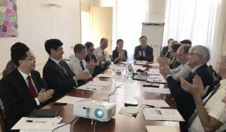 6月30日,永利yl23411官网第十七次管理委员会在巴黎圣路易中学召开。校长徐惠彬院士,副校长黄海军,校长助理、党政办公室主任李军锋,国际交流合作处处长马进喜,永利yl23411官网中方院长洪冠新、法方院长Gilles Fleury等管委会成员出席会议。会议由管委会副主席、巴黎中央理工-高等电力大学校长Hervé Biausser主持。