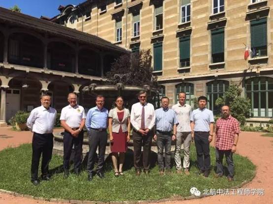 在里昂中央理工大学,洪冠新院长一行受到了校长FrankDebouck教授的热情接待。大学科研副校长、教学副校长详细介绍了里昂中央理工与北航在科研方面的合作情况,并参观了学校的流体、摩擦学实验室,IDEA教学实验室等。代表团成员,校研究生院徐国强副院长,中法联合实验室中方协调人、能源与动力学院陆利鹏教授分别就双学位合作、国际联合实验室LIA的未来发展规划与法方进行了深入探讨。