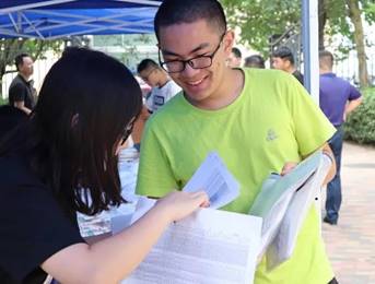 萌新们按顺序递交材料,领系服,领档案袋。在每个流程前都有美丽的学姐和帅气的学长为新生们引导和解答问题。当然也少不了(力大无穷的)的学长帮忙搬东西。
