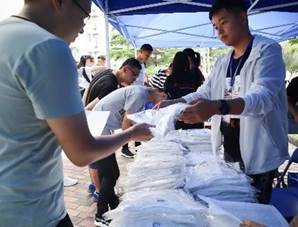 另外一些志愿者则赶赴地铁口校门口,准备引导新生到报到地点。