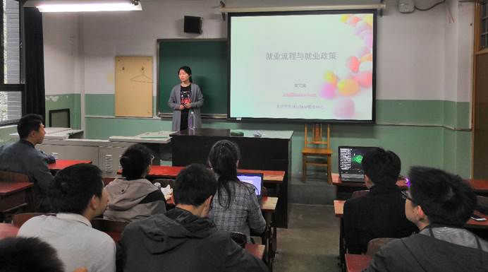 2018年10月16日,北航永利yl23411官网2016级研究生就业指导会在主北412教室举行。受学院邀请,北航招生就业处袁文婧老师向同学们详细讲述了北航学生毕业、就业的流程,为同学们的就业提供指导。2016级研究生辅导员吴亚光主持了会议。