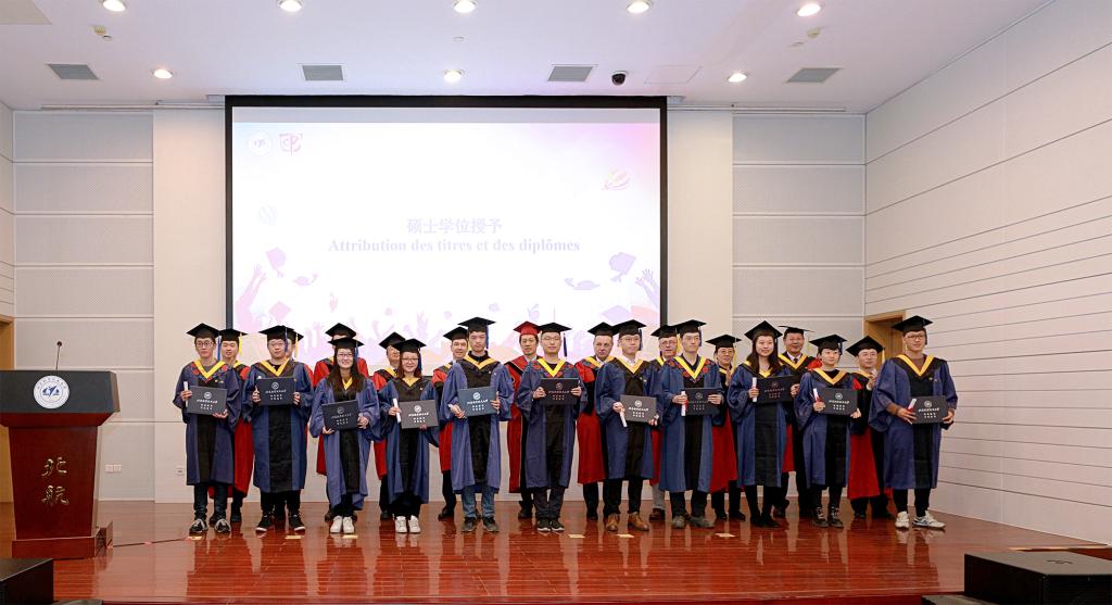硕士生导师代表于雷在发言中祝贺同学们顺利毕业。他回顾了自己在巴黎中央理工大学的博士生涯,表示法国的工程师教育模式对学生来说是机遇与挑战并存。他勉励学生们要为自己设定较高的人生目标,不畏困苦。工作后继续保持严谨的学习态度,在新的工作岗位上做出自己的贡献,树立北航人、中法人的良好形象。