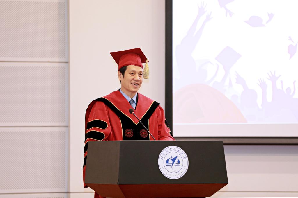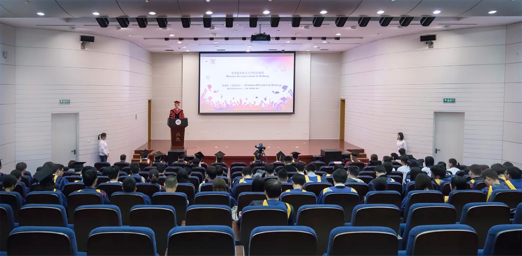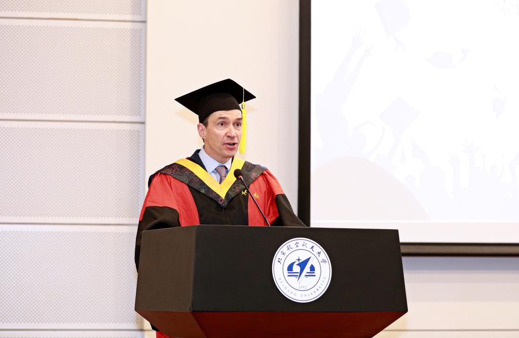 Romain SOUBEYRAN教授在毕业典礼上致辞。他指出,当今时代,人类社会步入了一个科技创新不断涌现的重要时期,在世界新科技革命的推动下,复合型国际人才在社会工作中的作用日益突出。为解决诸如企业工程技术革新,能源环境结构转型等社会热点问题,法国中央理工大学集团与永利yl23411官网合作办学,培养了大批拥有国际化视野,具有扎实的数理基础知识、丰富的实践应用能力、严谨的科研态度的高精尖人才。北航永利yl23411官网是首个与国外著名大学合作共建的、旨在培养精英工程师的院系,也是中法合作办学的典范。