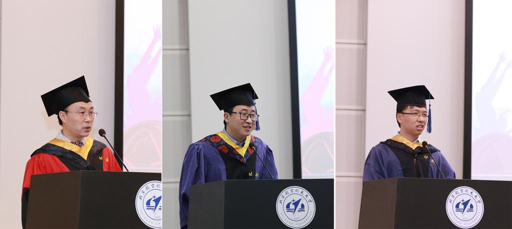 | 导师代表于雷,毕业生代表蔡文龙、王楚涵先后发言 |