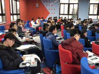 若是没有这般闲情雅致,不妨在有课的时候,带上一台电脑。在走廊的休息区下面,有几个不起眼的插座。课前闲暇,手拿一杯咖啡,坐在休息区,与好友闲谈;将电脑接上电源,用笔记本自习,再悠长的时光也不用担心电脑电量耗光。待上课铃响,走进教室,每张圆桌下面也都配备了插座,方便每个听课的学生用电脑记录下每一个知识。加大的投影屏幕、全新的多媒体设备,科技的温暖可以一直送达大教室的最后一排学生。看看这次的讲义内容是不是更多了?那就带上一台笔记本来记吧。