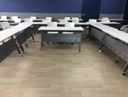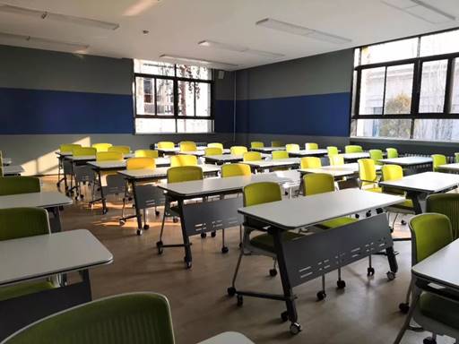 滑动桌椅——色彩的享受,思维的碰撞。小班教学教室的滑动桌椅,是装修后的一大风景。简约纯粹的白、清新舒适的绿、沉稳个性的蓝……每一种颜色都能烘托一种氛围,给人带来视觉上的享受和心灵上的放松。除此之外,通过滑动桌子可以摆放为U字型,从而使老师的授课更加高效。置身其中,我们也会感到轻松自在,积极主动地参与到课堂当中,在欢快愉悦的氛围中学习知识,不断进步。