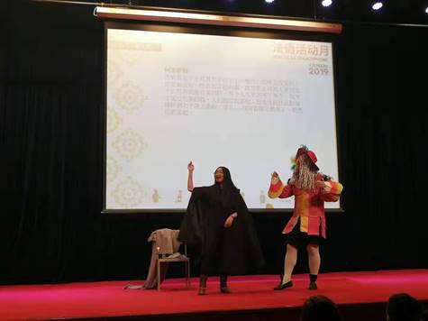 在第二天的法语戏剧大赛中,永利官网2017级苏兰馨同学和王维士,虽然仅学习了一年半的法语,但勇于挑战最难的一段台词,与其它院校法语专业的学生同台竞技,表现非常专业,受到评委的一致好评。