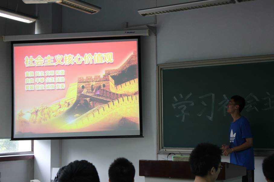 本次学习活动总共分两个部分进行。第一部分是对社会主义核心价值观的集体学习,主要以ppt的形式向各位党员介绍社会主义核心价值观的相关概念,从“什么是价值和价值观”,“社会主义核心价值观的科学内涵”,“学习实践社会主义核心价值观的意义”,“如何践行社会主义核心价值观”四个方面对社会主义核心价值观进行了深入了解与学习。第二部分是组织大家集体观看习近平总书记在中共中央政治局第十三次集体学习时讲话的相关视频,主题为“把培育和弘扬社会主义核心价值观作为凝魂聚气强基固本的基础工程”。社会主义核心价值观体系是兴国之魂,是社会主义先进文化的精髓,决定着中国特色社会主义的发展方向。对于我们研究生党员而言,学习和践行社会主义核心价值观意义重大,大学生的思想政治素质、道德品质、科学文化素质,直接关系到党和国家的前途命运。