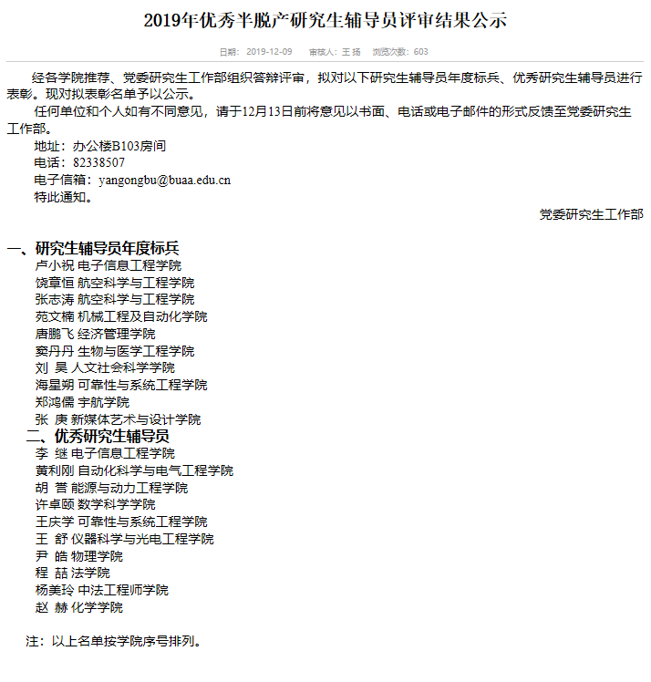 2019年12月9日,永利yl23411官网2018级研究生辅导员杨美玲在三十九名候选人中工作突出,荣获永利yl23411官网优秀研究生辅导员。