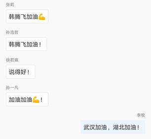 在与目前身处武汉的韩腾飞同学语音连线时,我们了解到当前武汉的防疫形势依旧是紧张而有序的,目前在武汉的日常生活仍旧面临着一些不可避免的困难。在疫情面前,韩腾飞依旧充满信心,大班的同学们也纷纷为她鼓劲加油,这一幕让我不禁感慨万千。我们相信,疫情终将过去,胜利就在不远的前方。