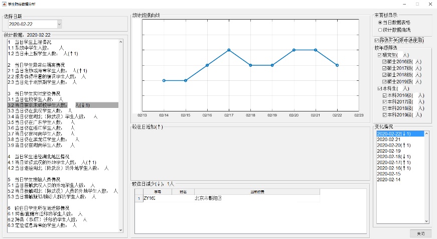 为了能够精准战“疫”,自2月8日“疫情防控通”小程序基本稳定开始,历时5日,经过4版修改,我完成了一款能够分析学生异动情况和数据变化趋势的程序,为永利yl23411官网在精准战“疫”的道路上领先一步。