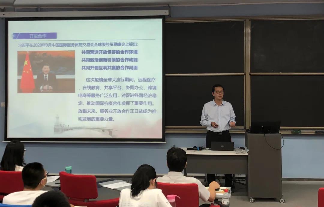 开学第一课由学院党委书记张江老师主讲。张书记首先以《开放合作,立德树人》为题开展思政教育,围绕习近平总书记的领导指挥,强调了思想政治工作在教育过程中的重要性。同时,张书记以学院优秀学生代表的事迹和学院积极抗疫的行动启迪同学们,要德智体美劳全面发展,将高尚的人格品德内明于心、外化于行。