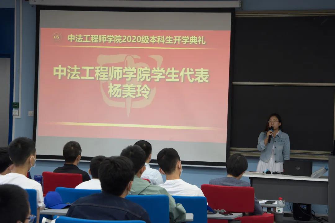 最后,中法工程师学院2020级本科新生代表张景轩发表演讲,代表全体新生自信表示,将在国际气息浓厚的教学环境中,锐意进取,以梦为马,成长为真真正正的“北航人”、“中法人”。
