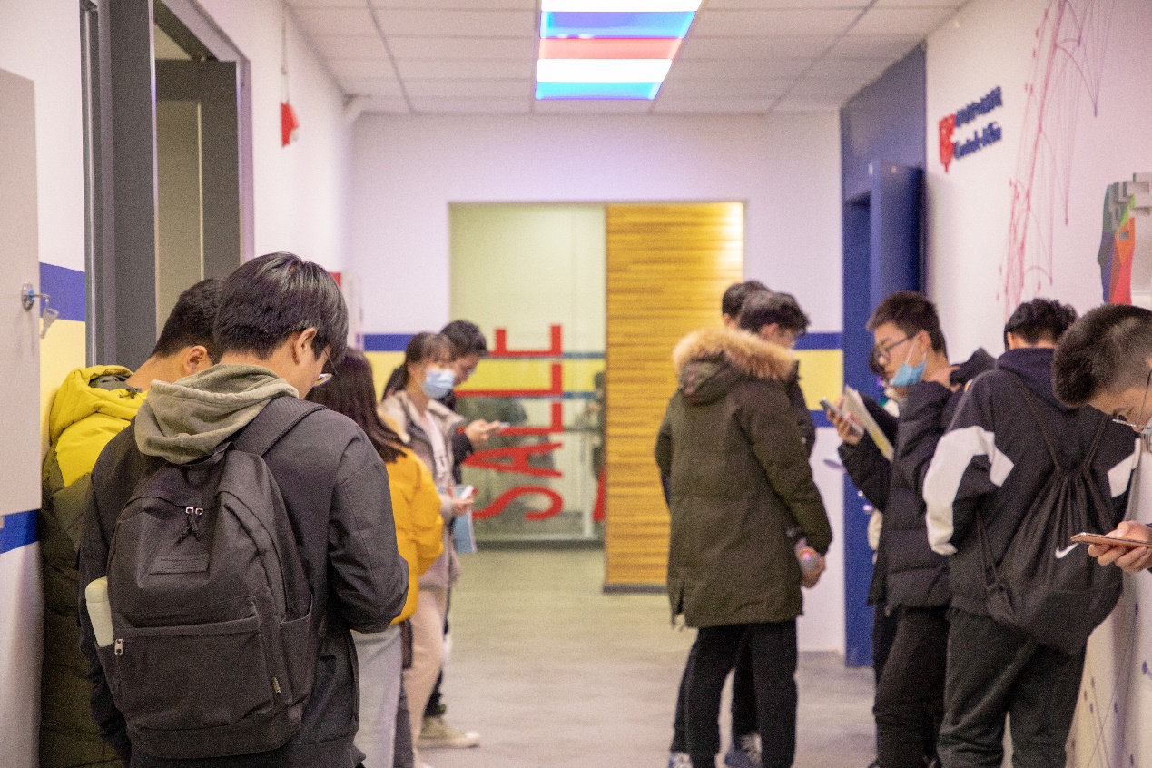 大家轮流抽取题目,两人一组,围绕抽到的主题准备五分钟,然后和自己的小伙伴进入测试房间进行对话,受邀而来的学长学姐化身评委,仔细认真地听着学弟学妹们的法语对话~