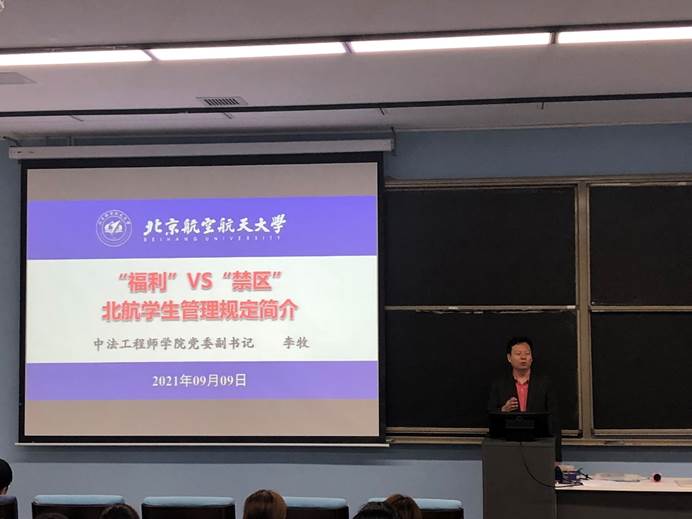 2021年9月9日上午,北航永利yl23411官网2021级本科生开学典礼在二号楼305教室举行,学院领导班子、2021级辅导员及全体新生参加会议。出席的学院领导包括:学院院长洪冠新、学院党委书记张江、学院法方院长Frederic GENTY、学院副院长张巍、学院副院长殷传涛、学院党委副书记李牧。