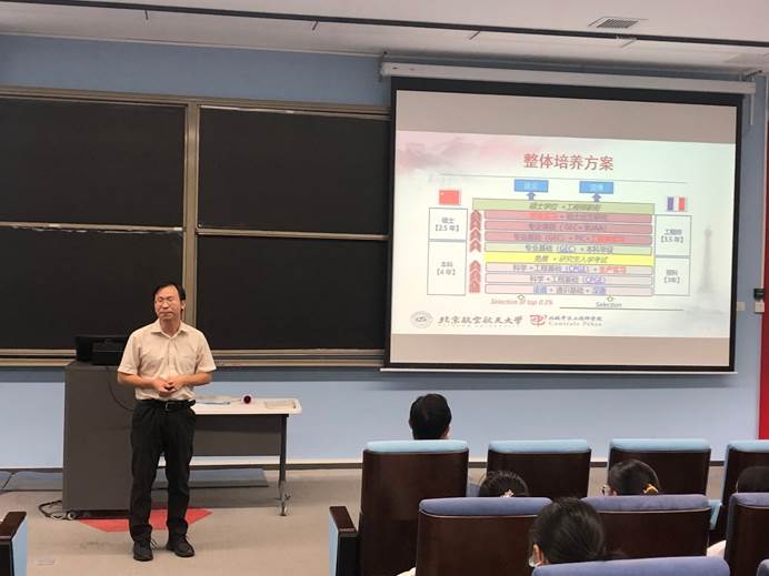 永利yl23411官网法方院长Frederic GENTY致辞,表示了他对同学们取得优秀成绩、进入北航永利yl23411官网的衷心祝贺,并介绍了学院的办学特色,国际交流等方面的内容。