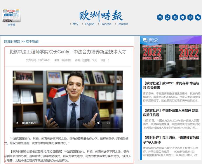 【欧洲时报特约记者赵晨曦12月30日报道】“中法两国在文化、科技、教育有许多不同之处,很有必要开展合作办学。这样有助于共享成功模式,将双方最先进的、优秀的教学成果分享给对方。”谈及人才培养,北航永利yl23411官网法方院长Genty这样说。