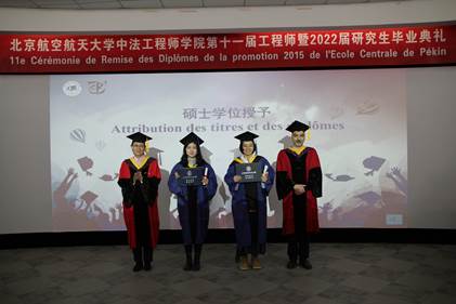 截止2022年1月,学院已经培养了11届共843名具有我国硕士和法国通用工程师双学位的毕业生,是“中法两国高等教育合作的典范”。北航中法的毕业生兼具北航人的空天报国精神和中法人的国际视野,愿所有毕业生不忘初心砥砺前行,为全面建成社会主义现代化强国的第二个百年奋斗目标和中法友好交往做出中法人的贡献。