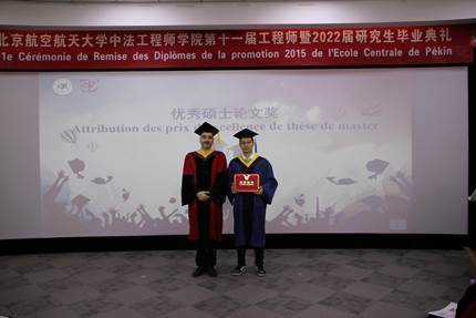 随后,GENTY院长、洪冠新院长和张江书记依次为北航优秀硕士论文获得者朱健、北航优秀毕业生朱健、徐宗宇和北京市优秀毕业生获得者张路杨颁发证书。
