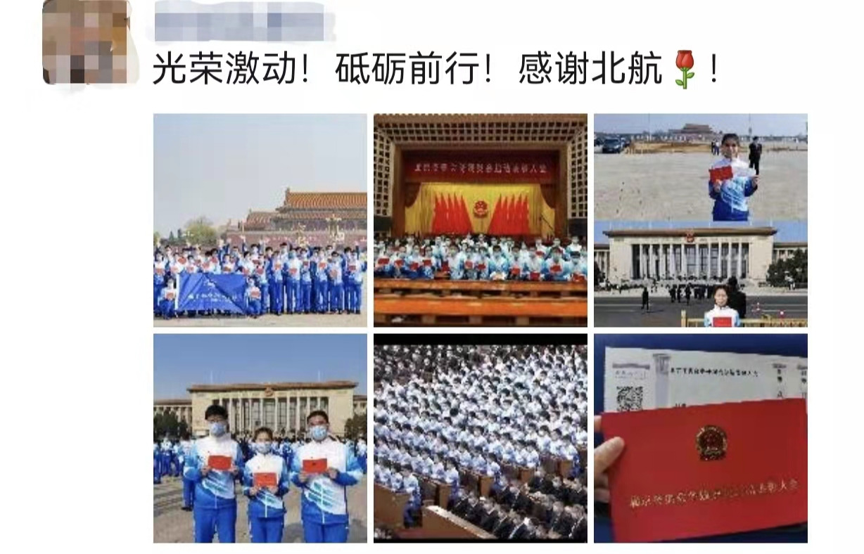 这是我第一次踏进人民大会堂,眼前的红地毯和经常在电视前看到的场景一模一样,我不敢相信能如此幸运有机会做志愿者、踏进人民大会堂参会,看到习近平总书记和一众领导与备受关注的明星运动员。在现场,我感受到习近平总书记对服务冬奥和冬残奥会人员的关心,这次大会也是对我们几十天志愿服务工作的肯定和激励。感谢北航给了我见世界的机会,感谢强大的祖国给我们强有力的支持,感谢中国共产党的正确领导。何其有幸,躬逢盛事!未来,不忘初心,砥砺前行!”