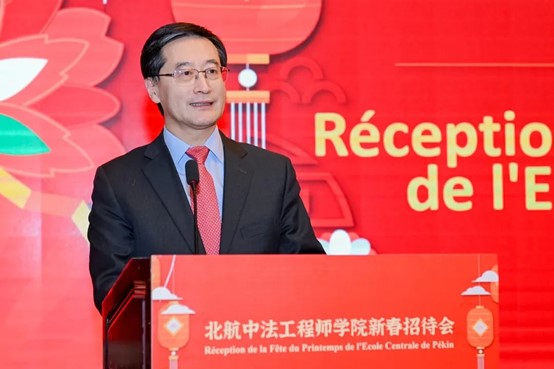 校长王云鹏首先向各位中外嘉宾长期以来对学校的关心和支持表示衷心感谢,向学院全体师生致以新春祝福。王云鹏在致辞中指出,北航与法国高校有着近40年的交流合作历史,取得了丰硕的合作成果。永利yl23411官网自2004年创办以来,系统引入法国工程师学历教育体系和培养模式,走出了一条中法教学模式深度融合、校企深度融合的工程师培养新路。建院以来,学院培养了900多名国际工程师人才,为两国交流做出了重要贡献。永利yl23411官网的办学成果得到了中法两国政府的充分肯定,被誉为中法高等教育合作的典范。王云鹏表示,将进一步拓展与法国知名高校和企业的务实合作,为推动中法教育科技人文交流做出更大贡献。
