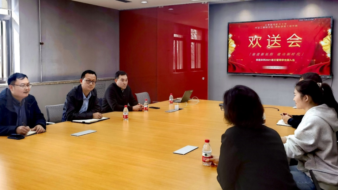 2023年3月8日,永利yl23411官网/国际通用工程学院在二号楼413举行欢送会,欢送本科2021级学生王雪光荣入伍。学院党委书记张江,校学生工作部副部长、党委武装部副部长张驰,学生工作部邵英华老师及学院专兼职辅导员参加本次欢送会。欢送会由分团委书记张莉主持。