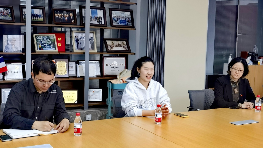 张莉老师首先介绍了王雪同学的基本情况和学院征兵工作相关情况。学院在鼓励在校学生参军入伍方面有着良好的传统,自2005年成立以来,先后有4名同学在校期间光荣入伍,王雪同学是学院的第一名“女兵”。去年,2019级同学张德良刚刚结束两年服役回到学院,学院正在组织相关宣讲,激励更多同学参与到学校国防教育和征兵工作中来。