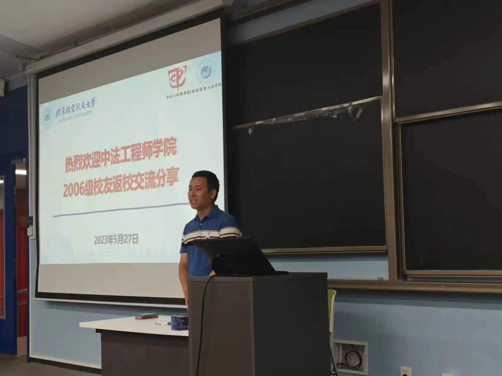 参观结束后,部分校友代表来到二号楼309与在校生开展座谈交流。交流嘉宾包括永利yl23411官网/国际通用工程学院教师黄行蓉、中国空间技术研究院通信与导航总体部某研究室副主任王兴龙、范德兰德自动化系统有限公司项目经理李佳宾、壁仞科技架构师于占乐、京东集团商业分析师张庶、赛峰集团运营经理刘牧原等来自各个行业的杰出校友。他们分享了在中法学院求学的求学时光和从业情况,为学弟学妹们答疑解惑、指点迷津。学院本科生就专业选择,如何提升自身专业能力等多方面问题与学长学姐进行了交流,纷纷表示收获良多,对未来职业规划有了更深的了解。
