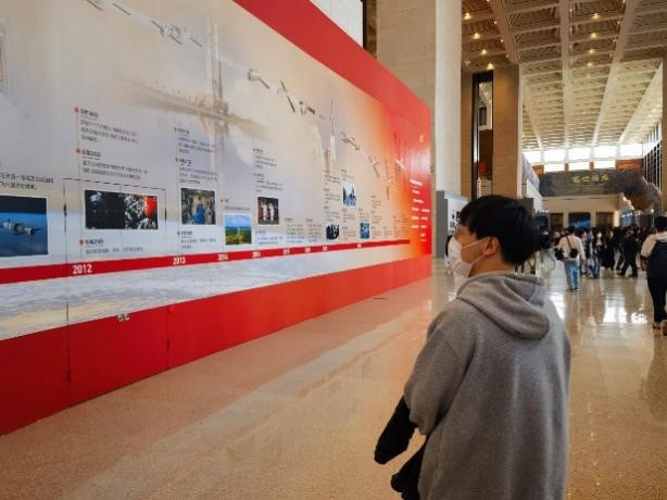 成就展以“回望飞天路、奋进新征程”为主题,共分领导关怀、光辉历程、辉煌成就和发展展望四个板块,全面系统回顾工程全线三十年来自信自强、奋斗圆梦的辉煌历程,重点展示了党的十八大以来,载人航天事业取得的跨越式发展和历史性成就。