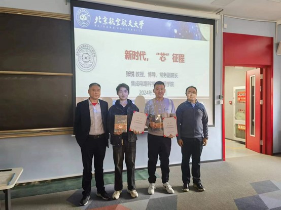 会前,为进一步发挥“榜样引航”作用,助力山西省招生和学院招生再上台阶,中法国通学院选推荐了刘宇翾和张钊阳两名山西籍优秀同学,作为山西招生组宣传联络员,张悦教授、罗洪斌教授共同为两位同学颁发了聘书,赠送了集成电路科学有关书籍。