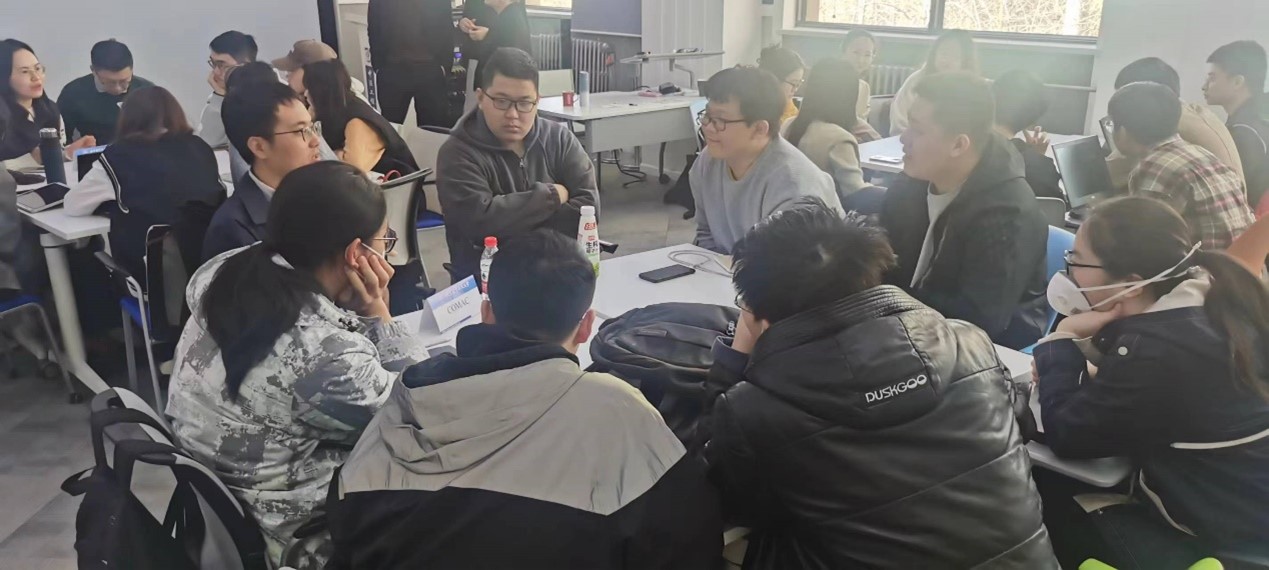 随后学生组成7个小组,由法方项目管理团队Olivier De LAPARENT、Dominique Pareau、Sanaa Le Gendre、Jean-Marc Louward和Veronique Le Courtois主持,7家企业人力资源在7个小组之间进行了循环置换,学生在与企业代表进行面对面深入交流,向企业代表问询招聘需求和未来关键技能,从实际角度了解理论知识在企业中的应用,为未来就业和职业发展打下基础。