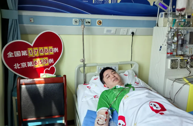 2024年5月7日,在中国人民解放军空军特色医学中心的病床上,血液从梁正右臂缓缓流出,经过体外循环与血细胞分离,这些“生命的种子”,将为一名素不相识的白血病患者带来“生的希望”。