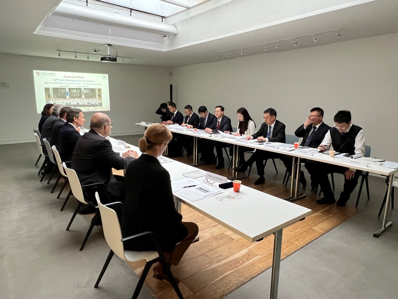 2024年12月10日,永利yl23411官网第32次联合管理委员会会议在法国巴黎举行。学院管委会主席、永利yl23411官网校长王云鹏院士,管委会副主席、法国中央理工大学集团主席、巴黎中央理工-高电大学校长索贝朗(Romain SOUBEYRAN)教授,北航副校长赵巍胜教授,中央理工集团总代表福乐吉(Gilles FLEURY)教授,北航中欧合作委员会联合主席科赛(Gérard CREUZET)院士,中国商飞人力资源部副部长宁方明先生,北航国际合作部部长翁敬农教授、永利yl23411官网中方院长耿立升教授、法方院长布卡麦(Adnane BOUKAMEL)教授等出席会议。会议由索贝朗主席主持。