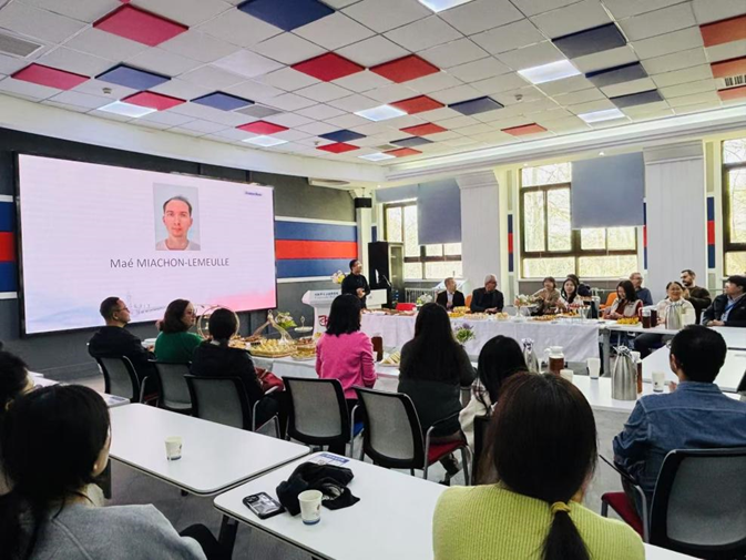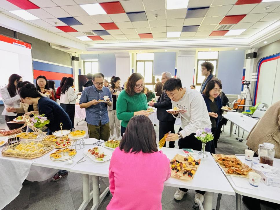 冷餐会接近尾声,法方副院长玛丽姆向大家介绍国王饼的起源和传统。吃到“蚕豆”的人是2025年的幸运儿,得到了大家的祝福。