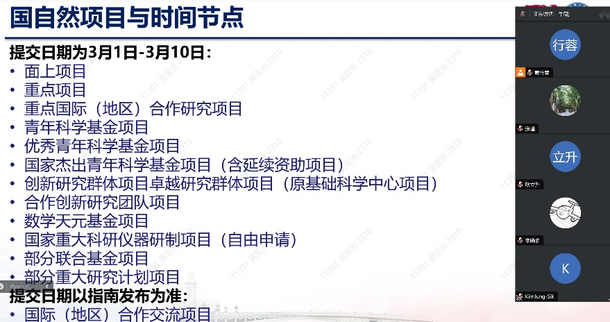 2025年1月15日,为了进一步提升学院科研实力,推进国家自然科学基金申请工作取得新突破,中法/国通学院召开了国家自然科学基金申请动员会。本次会议采用线上/线下相结合的方式,耿立升院长、中方教师、部分外籍教师出席了此次会议,会议由黄行蓉副院长主持。