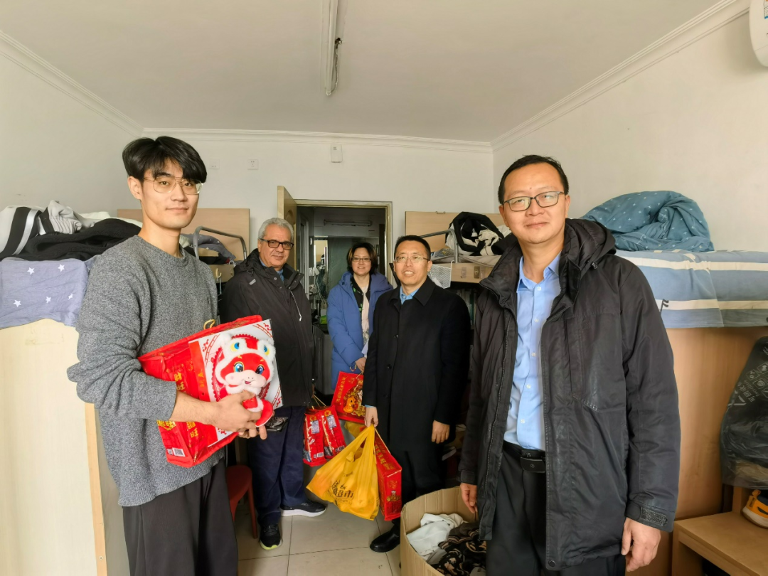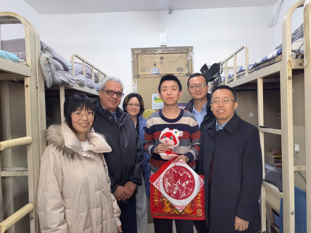 祥龙贺瑞辞旧岁,灵蛇纳福启新程。2025年1月23日,中国农历新年到来之际,永利yl23411官网/国际通用工程学院党委书记张江、院长耿立升、法方院长布卡麦(Adnane Boukamel)、副院长黄行蓉、分团委书记张莉和学生辅导员一同前往实验室和学生宿舍,看望在校学生和法籍教师,并送去了新春祝福。