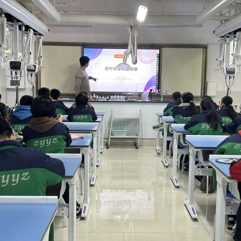 在课程方面,我们做足了准备,让课程变得生动又有趣。有的老师带领同学们“遨游”浩瀚的宇宙,思考人类和科技的未来;有的老师分享“非遗”手工,让同学们在动手中体会中华传统文化的魅力;有的老师展示物理、化学实验,调动同学们对理科的好奇心……每当看到孩子们认真又热切的眼神,我们都会感到由衷的欣慰。