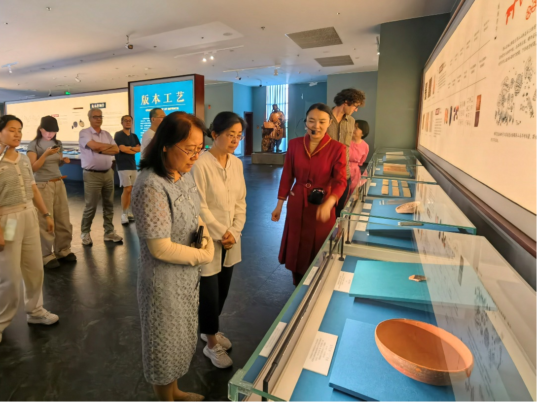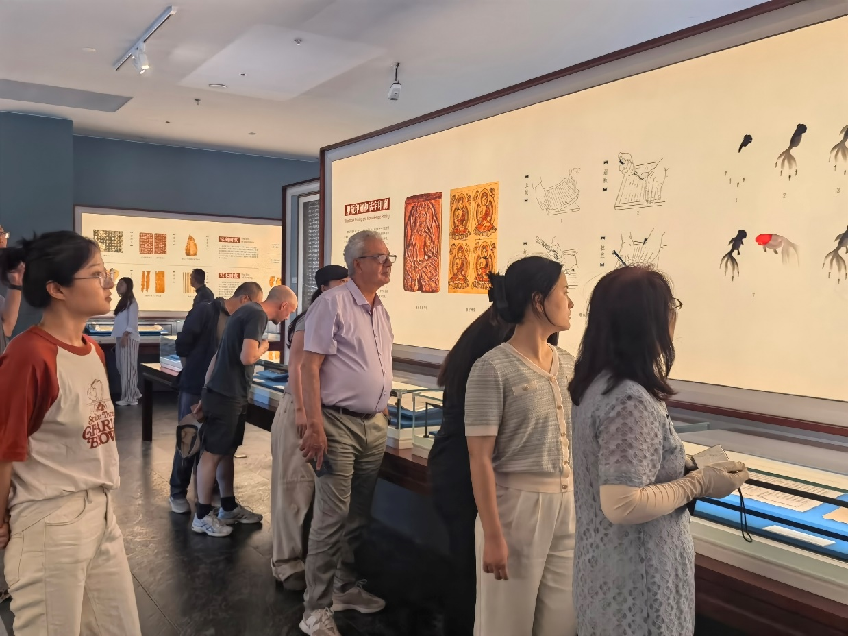 在专业讲解员的引导下,中外教师先后参观了“版本工艺”、“版本琳琅”、“斯文在兹”等特色展览。参观过程中,唐写本《文选集注》、木活字版印本《吉祥遍至口和本续》等镇馆之宝令教师们叹为观止。《山海经全图》《西楼苏帖》等孤本珍品的精美呈现,更让外籍教师直观感受到中华文明的博大精深。