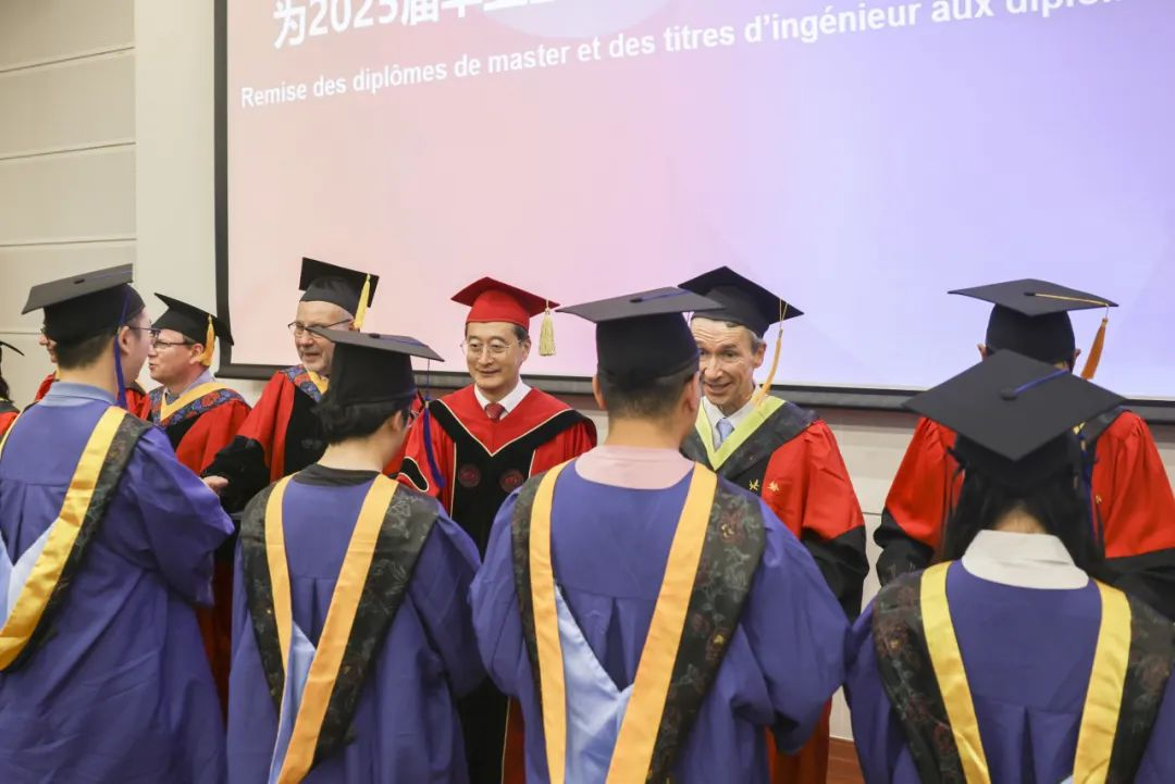 论坛开始前,举行了北航中法工师学院2025届学生毕业典礼,王云鹏、索贝朗共同为所有毕业生颁发毕业证及工程师证书。教师代表计算机学院黄迪教授、学生代表王泽坤分别发言。