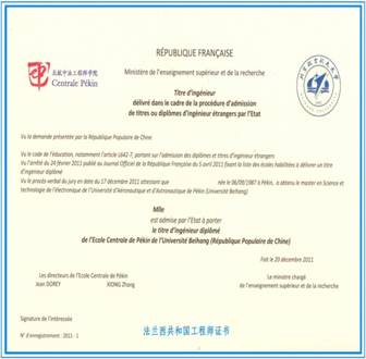 研究生阶段结束时,考核合格的学生可以获得北航颁发的研究生毕业证书和“系统工程”(学术型)或“工业工程”(专业型)硕士学位及法国工程师职衔证书。